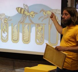 ? Hey, teacher, leave us kids alone! ? When the beek became the teacher today, I found myself amongst 6 years olds, playing bee games, telling about bees, tasting honey and showing a small one frame hive. And later on: teaching 9 […]