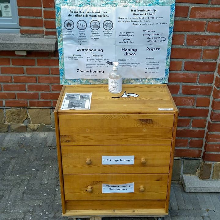 Het honingkastje staat er elke dag van 9u tot 21u met echte imkerhoning (vast of vloeibaar) én honingchoco 😋♥️🍯
