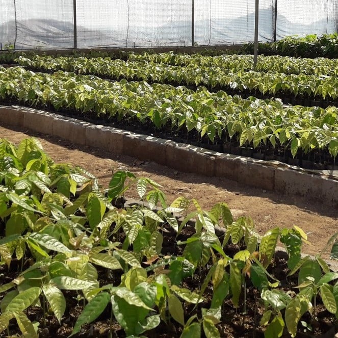 NEWSFLASH – Jullie weten dat we het ‘korte keten principe’ bij De Kleine Steen heel serieus nemen: wel, daarom hebben we bij de bloemenkweker om de hoek een stukje van hun serres gehuurd, waar nu al 1000 cacaoplantjes flink aan het groeien zijn, zodat we deze zomer honigchoco uit onze bijenkasten kunnen oogsten, die voor de volle 100% door onze bijtjes is geproduceerd…! Zo hoeven we geen (elders geteelde) chocolade meer bij onze honing te mengen om onze heerlijke honingchoco te produceren, want de bijtjes brengen het immers allemaal zelf mee na het bloembezoek.