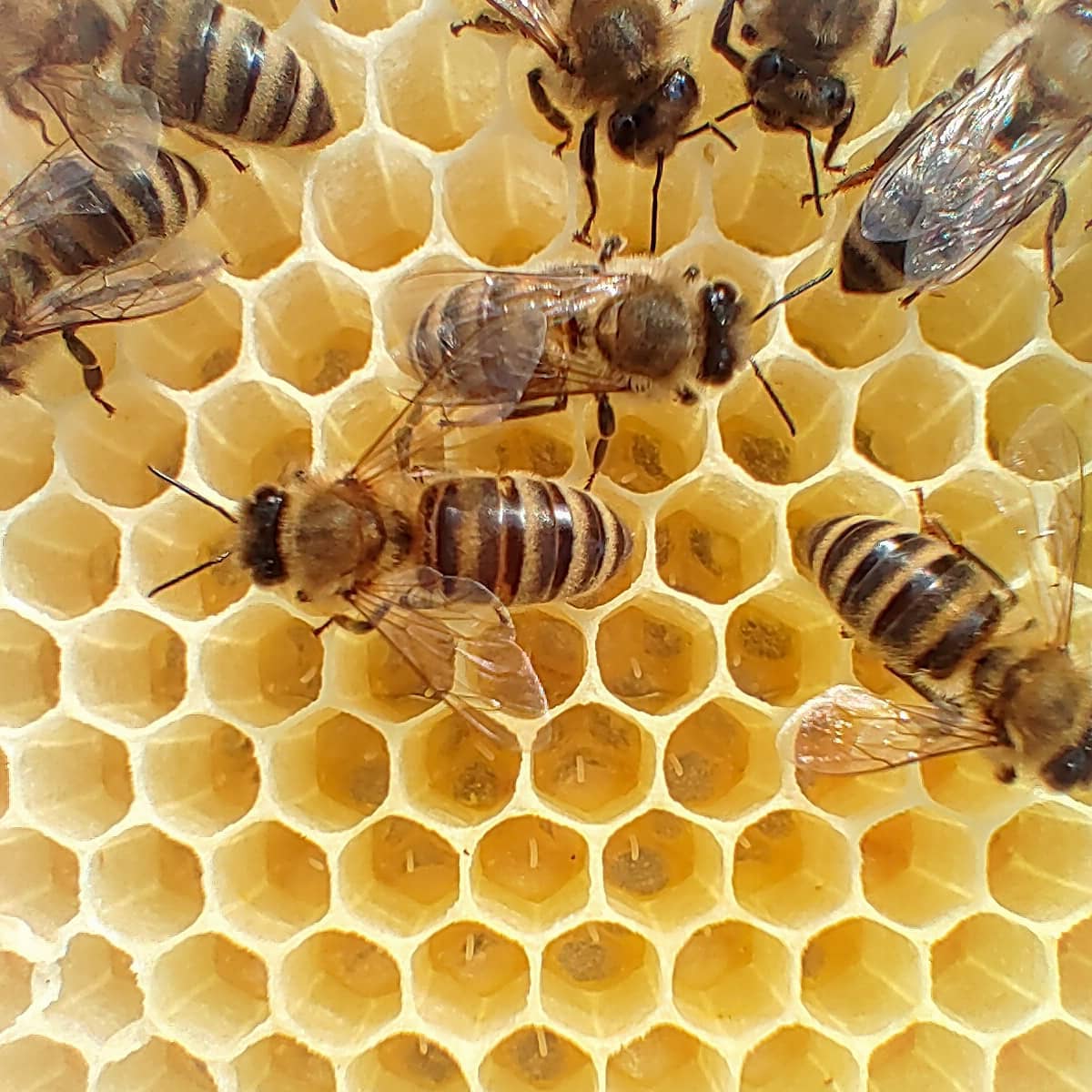 Zie je de eitjes op de bodem van de cellen? Tot 2000 per dag legt de moer er in deze tijd van het jaar! Dat is meer dan 1 per minuut, als ze geen pauze neemt en 24u/dag doorwerkt 😲