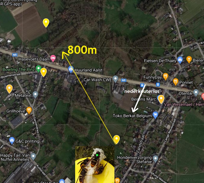 Op elke gele pin werd al een Aziatische hoornaar gezien, maar de hotspot is de klimop onderaan deze kaart