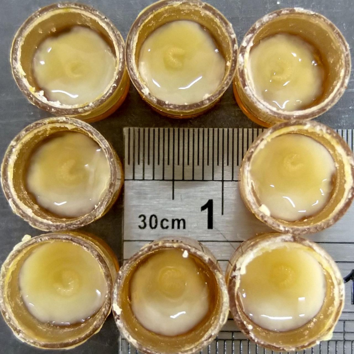 Deze larfjes zijn één dag oud en zwemmen in de koninginnebrij. Hun moeder is een geselecteerde reinteeltkoningin 👑 Ze worden nog enkele dagen goed verzorgd door onze bijen voor ze gaan verpoppen, en over 10 dagen worden de prinsesjes geboren, fingers crossed 🤞