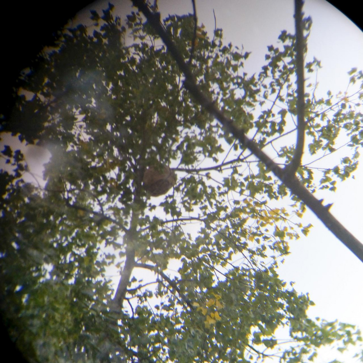 Foto door de verrekijker (in de regen). Het nest hangt heel hoog in een boom…. (September 26, 2022 at 12:44PM)