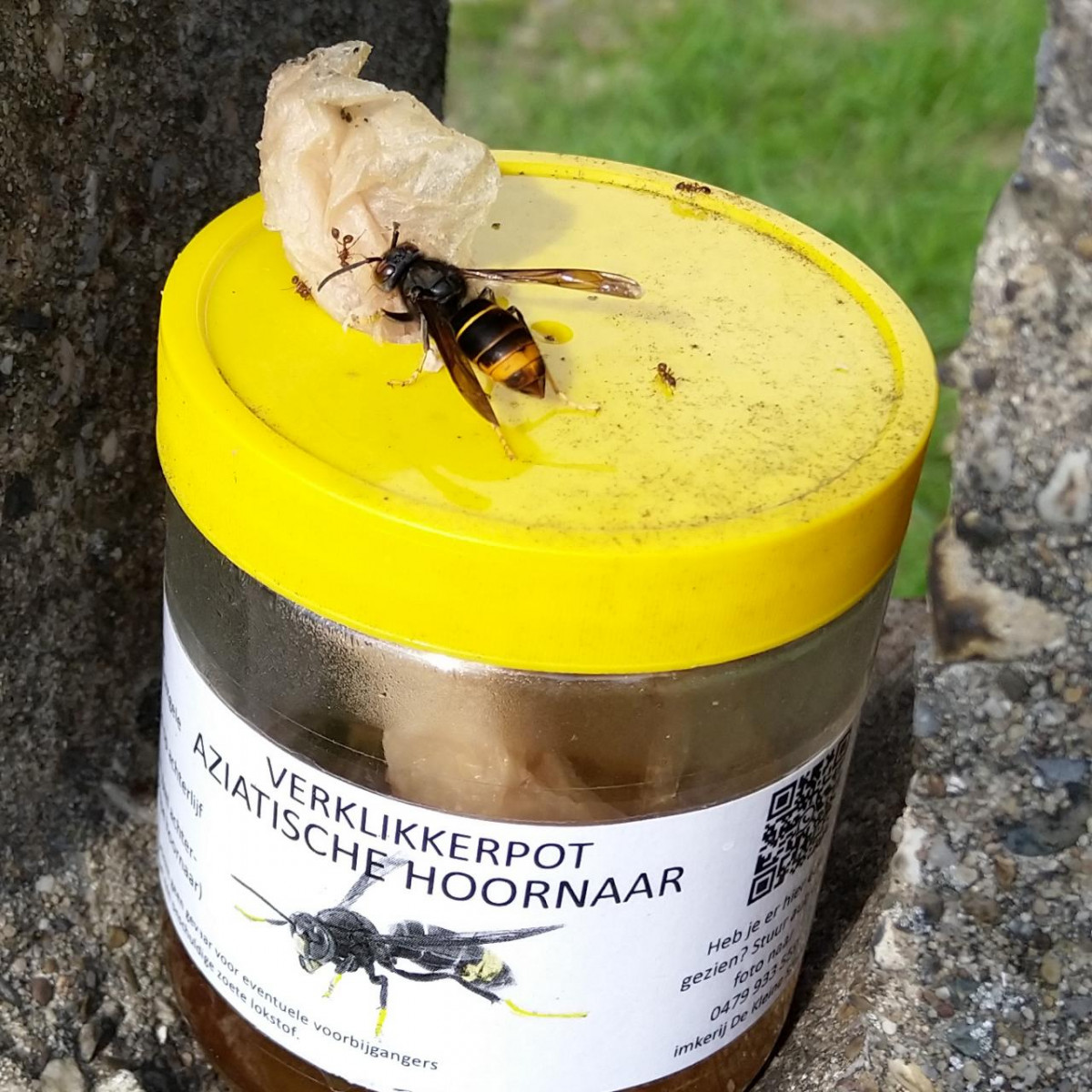 Vanaf deze wiekpotten kunnen we de vliegrichting van de hoornaars volgen. Als ze hier zijn volgetankt, vliegen ze richting nest. Vanaf deze locatie in Overimpestraat/Vuystermanstraat leken ze west-noordwest te vliegen (richting Edenroc) en zetten me zo op het verkeerde been (en bezorgden me heel wat tijdverlies), want later bleek dat ze telkens een bocht namen als ze uit het zicht verdwenen waren en eigenlijk meer naar het zuiden gingen.