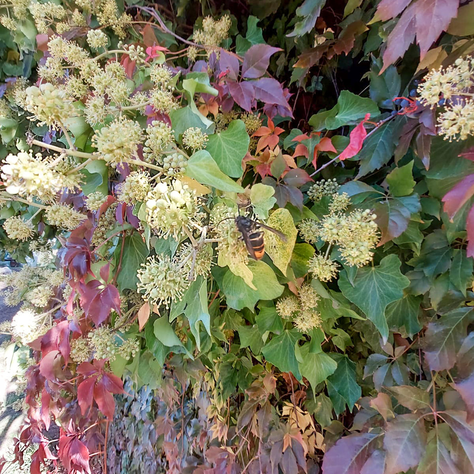 Klimop is een magneet voor veel nectarverzamelaars en dus vind je er sowieso ook Aziatische hoornaars, als er nest in de buurt zit. Ze vliegen makkelijk 1km ver van het nest, tot maximum 2km.