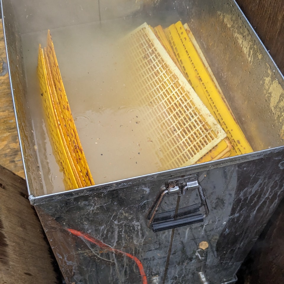 Als wasbak is ze groot genoeg om een volledige broedbak in te krijgen.
