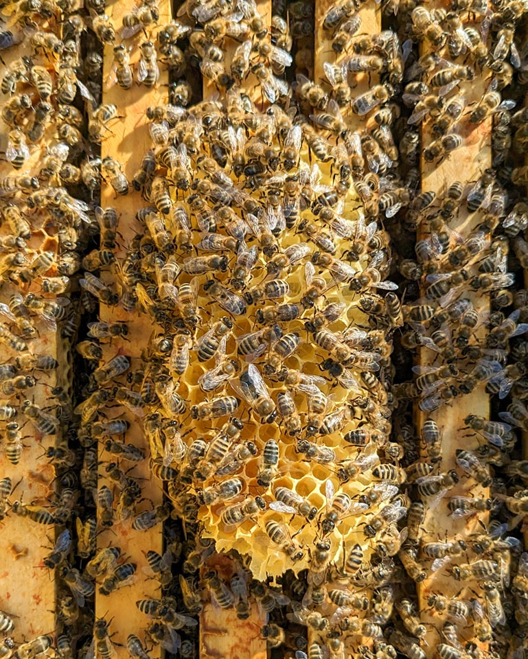 • ← Wat een mooie lentedag, deze Paasdag! De bijtjes hebben de hele dag druk aan- en afgevlogen en het ruikt hier vanavond al wat naar nectar aan de kasten! 😋… (April 09, 2023 at 08:06PM)