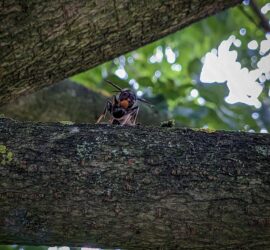 Vandaag de afleggers in Schellebelle gaan controleren en nog maar bij het naderen van de kastjes had ik het al opgemerkt: jagende Aziatische hoornaars, zucht… #hetnieuwenormaal Hier zie je ze met een bij die ze net gepakt had… (July 25, 2023 at 12:32PM)