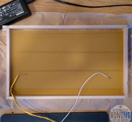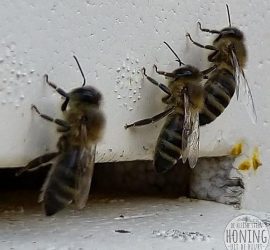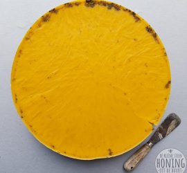 Eén van de minder glamoureuze kanten van het imkeren: waswafels insmelten. Om de raten in de kast te kunnen manipuleren zonder de bijen te veel te storen of hun werk te beschadigen, werken imkers met raampjes met daarin ‘waswafels’, dat is een […]