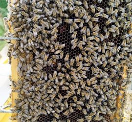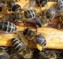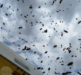 Op de varroalade, onder elke kast, wonen nu de ondertussen uit hun nesten verstoten wespen, hopend op een verloren drupje nectar…